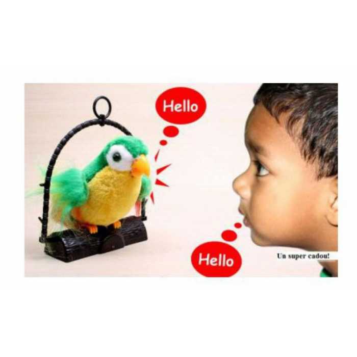 Jucarie de plus interactiva, papagalul vorbitor in colivie , repeta tot ce aude, 15cm, Baterii incluse, by Oferte Shop Enervant de amuzant! Se plimba si trancaneste! Te imita, te agaseaza, te distreaza! Fa cunostinta cu Pako, papagalul plin de haz care te imita, repetand tot ce-i spui cu glasul lui pitigaiat, in timp ce se plimba tantos incolo si-ncoace! Vei descoperi in el un prieten bun si plin de umor, care te intelege atat de bine, incat vorbeste exact ca tine! Este suficient sa apesi butonul de pe aripa lui stanga si sa spui ceva! Pako inregistreaza vocea si apoi o reda distorsionat, pentru un efect comic, deplasandu-se in acelasi timp. Produsul functioneaza cu 3 baterii alcaline tip AA de 1.5V. Bateriile sunt incluse in pachet.